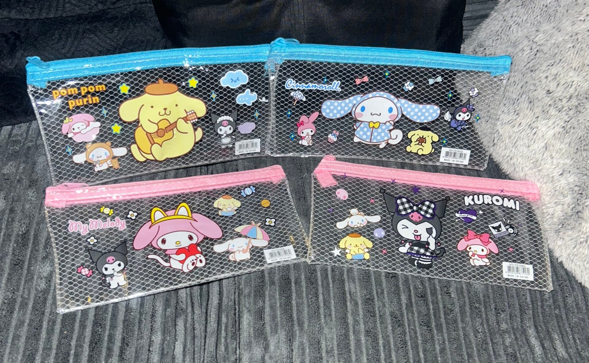 Hello Kitty and friends fluffy zip up bags.